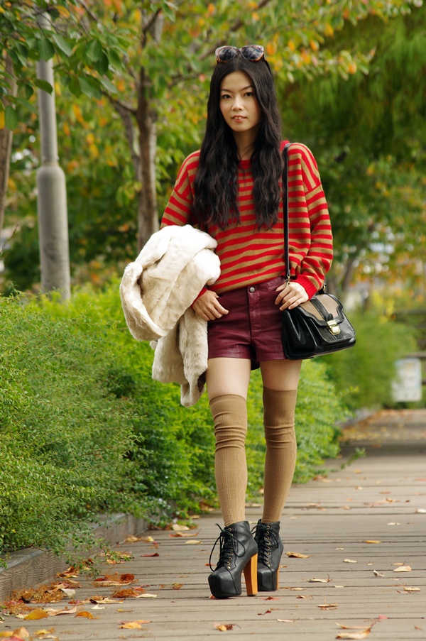 (( Outfit details...Coat UNIQLO / Knit ZARA / Shorts TOPSHOP / Socks tutuanna* (Brand of Japan) / Shoes Jeffrey Campbell / Bag OZOC (Brand of Japan) / Suglasses SLY (Brand of Japan) / ))